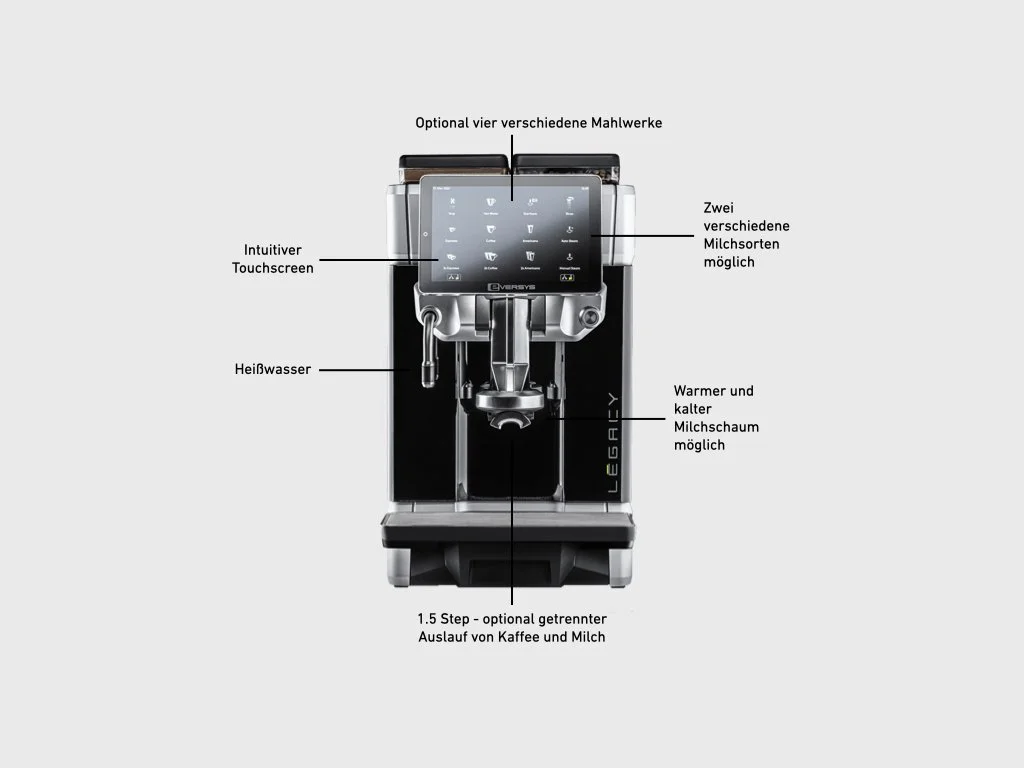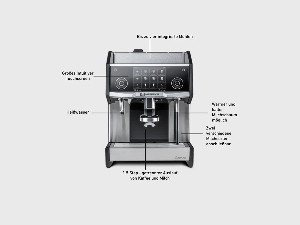 Eine Eversys-Maschine mit Vollausstattung beginnt mit der Legacy preislich bei ca. 15.000€, abhängig von den Optionen die für die Maschine ausgewählt werden. Die Eversys Kaffeemaschine ersetzt mehrere Einzelgeräte – inklusive Mühle, Puqpress, Milchsystem – und senkt so auch laufende Betriebskosten. Möglich ist es natürlich das Setup zu mieten oder zu leasen um Investitionskosten gering zu halten.